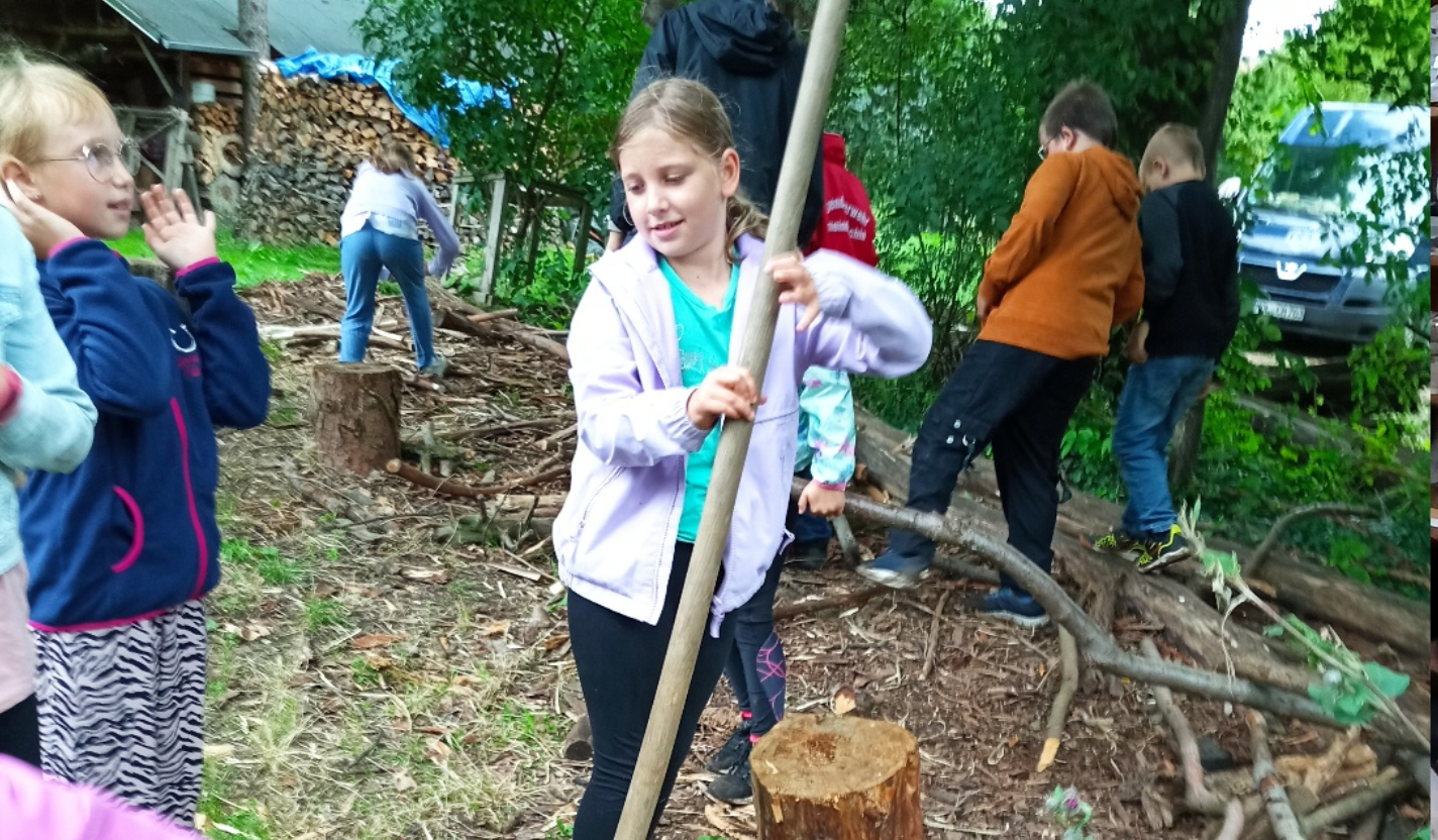 Bei unserem Besuch beim Uferloos in Kienitz konnten die Kinder etwas über Kräuter erfahren, den Aufbau eines Lagerfeuers und das dafür benötigte Holz zu sammeln.