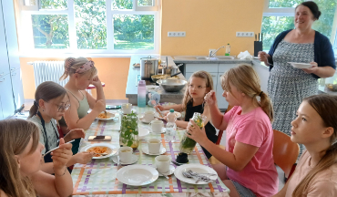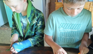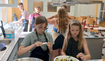 Am zweiten Tag beim Uferloos in Kienitz stellten wir Kräuterquark her und machten Naturwettspiele, z.B. Zielwerfen und Geschicklichkeitsspiele