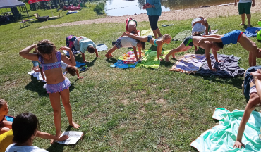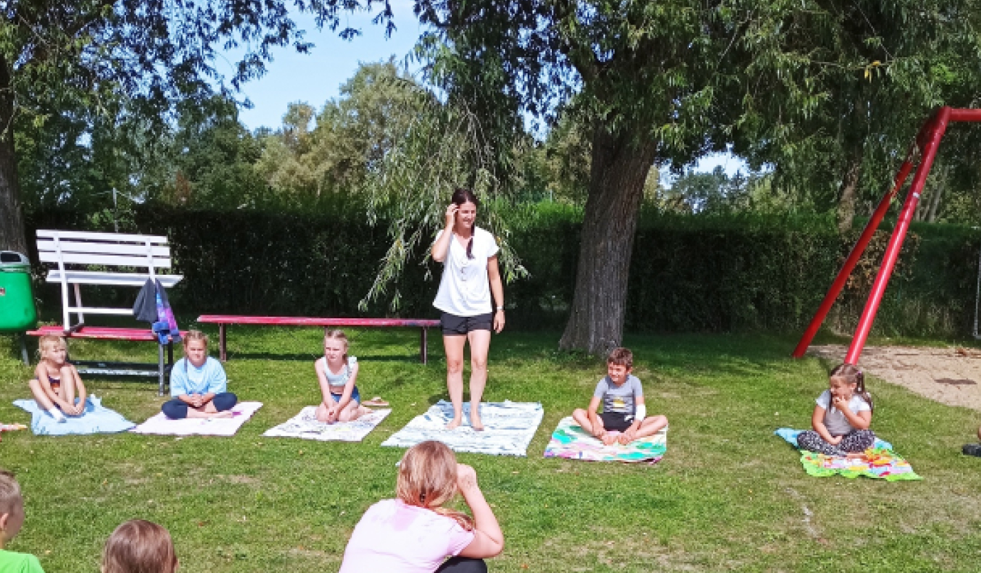Die Kinder konnten beim Kinderyoga in fantasievolle Übungen schlüpfen, wie z.B. Baum, Katze, Schmetterling und Frosch. Dabei wurden Körpergefühl, Konzentration und Selbstvertrauen gestärkt. So macht Bewegung Spaß und sorgt zugleich für Ruhe und Ausgeglichenheit. Außerdem verbesserten die Kinder unter Anleitung von Jenny ihre Schwimmfähigkeiten.