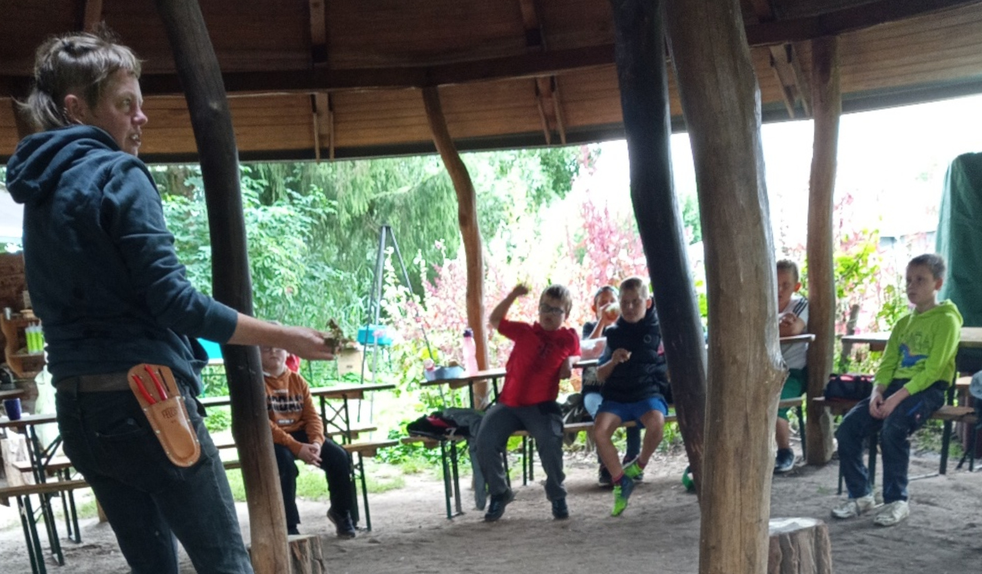 Bei unserem Besuch beim Uferloos in Kienitz konnten die Kinder etwas über Kräuter erfahren, den Aufbau eines Lagerfeuers und das dafür benötigte Holz zu sammeln.