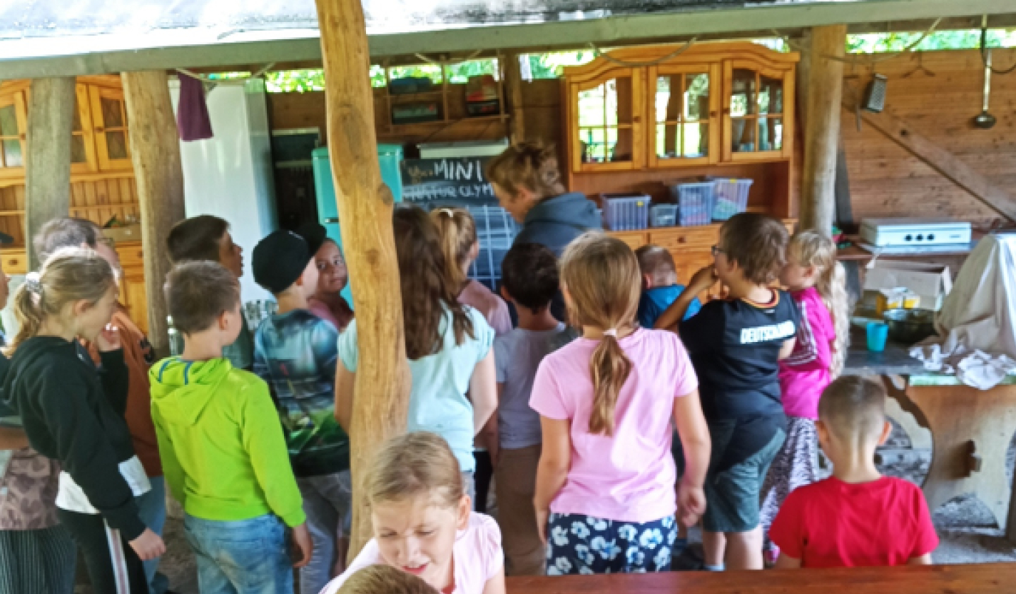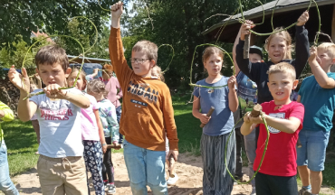 Am zweiten Tag beim Uferloos in Kienitz stellten wir Kräuterquark her und machten Naturwettspiele, z.B. Zielwerfen und Geschicklichkeitsspiele