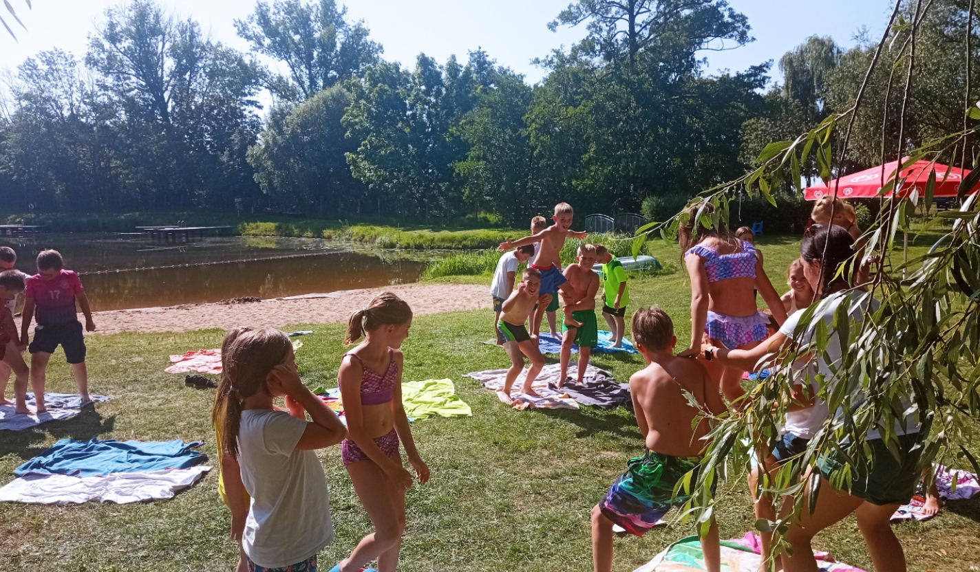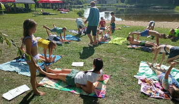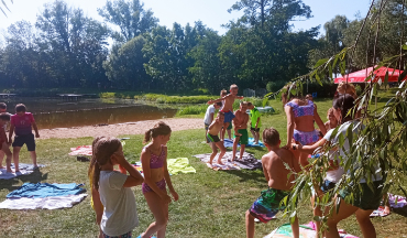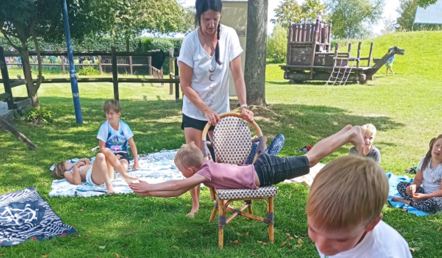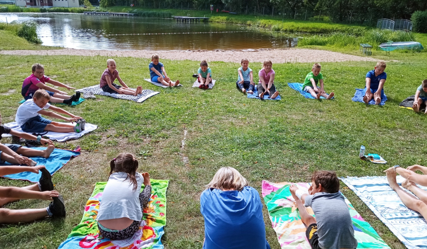 Die Kinder konnten beim Kinderyoga in fantasievolle Übungen schlüpfen, wie z.B. Baum, Katze, Schmetterling und Frosch. Dabei wurden Körpergefühl, Konzentration und Selbstvertrauen gestärkt. So macht Bewegung Spaß und sorgt zugleich für Ruhe und Ausgeglichenheit. Außerdem verbesserten die Kinder unter Anleitung von Jenny ihre Schwimmfähigkeiten.