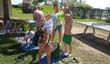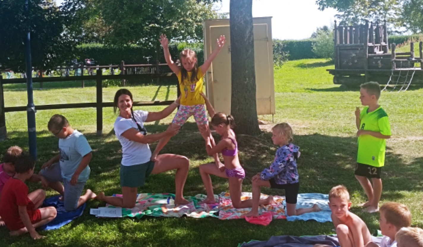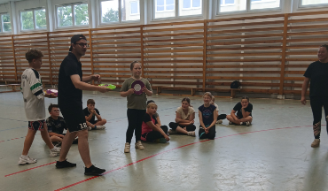 Am zweiten Tag konnten die Kinder sich im Akrobatik ausprobieren. Durch Hebefiguren, Pyramiden und koordinierte Bewegungen lernen Kinder spielerisch, sich gegenseitig zu vertrauen und aufeinander zu achten. Dabei entstehen nicht nur beeindruckende Figuren, sondern auch jede Menge Spaß und Selbstbewusstsein.